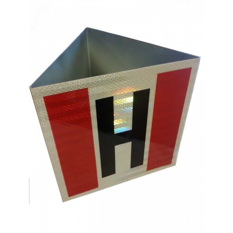 Znak trójścienny o boku 25x25cm wykonany na folii odblaskowej 3M na stelażu stalowym ocynkowanym. Przeznaczone do montażu na zewnątrz obiektu.